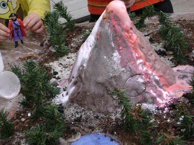 Añade en la botella: una cucharada de jabón para platos y 1 cucharada de bicarbonato de sodio, junto con un poco de colorante vegetal rojo y una taza de agua. Cuando estés listo para ver la lava explotar, añade el vinagre a la botella y rápidamente da un paso atrás a la espera de los resultados.
