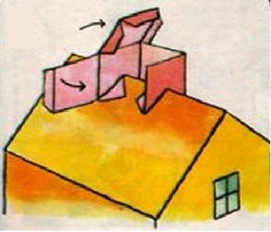 Pon pegamento en el tejado y coloca alrededor y en forma de caja la chimenea, usando como si fueran pestañas los triángulos doblados.