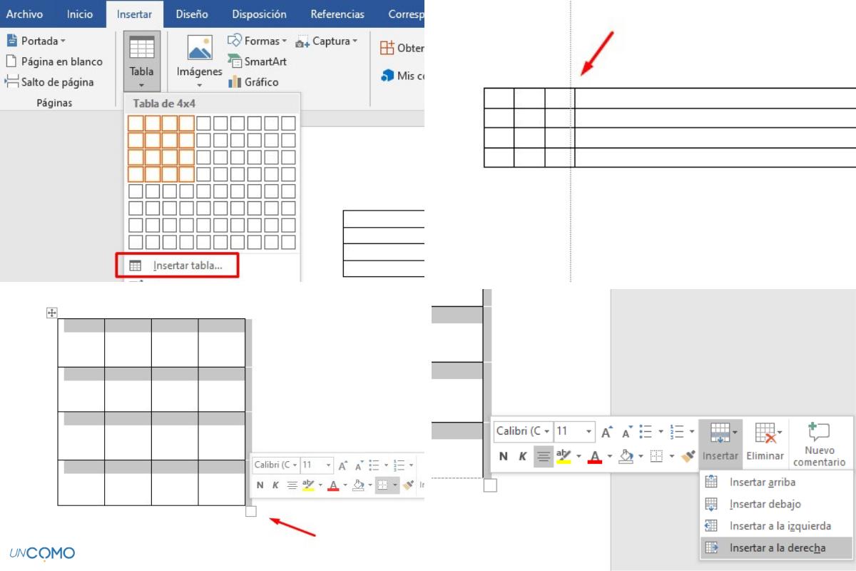 - Añade el número de filas y columnas que quieras darle a tu sopa de letras a través de la opción Insertar tabla. Si ves que son pocas, siempre podrás añadir más o eliminarlas sobre la marcha, depende de las palabras que quieras ir metiendo o que, por el contrario, no te convenzan.