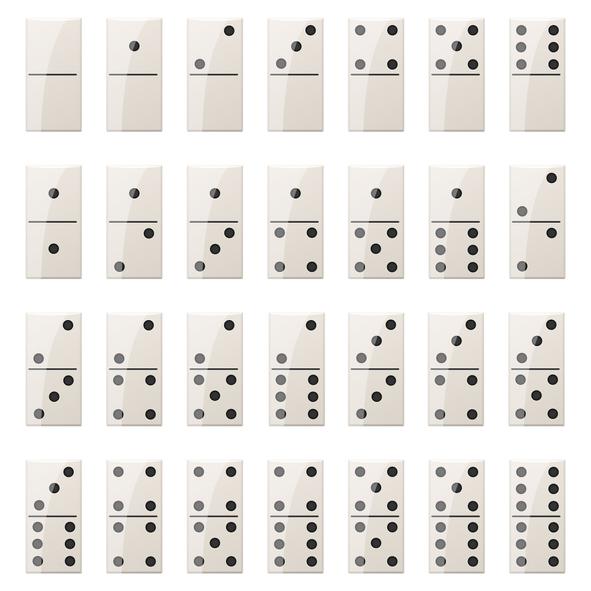 El juego completo de fichas consta de un total de 28 piezas, en cada una de las cuales se representa un par de valores posibles. Este juego antiquísimo puede considerarse como una extensión de los dados y, aunque su origen se supone oriental, la forma actual del dominó no fue conocida en Europa hasta mediados del siglo XVIII, cuando lo introdujeron los italianos.