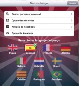 Para jugar apalabrados lo primero que debes hacer es escoger un oponente. Puedes hacerlo buscando un usuario por su email, eligiendo un oponente con el que haya jugado recientemente, optando por algún amigo de Facebook o simplemente escogiendo un jugador de forma aleatoria.