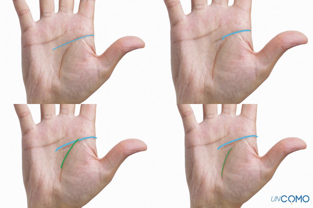2. Línea de la cabeza: la línea de la cabeza habla de tu intelecto, de tu estado mental y de tu capacidad para entender los problemas de la vida y dar con soluciones.