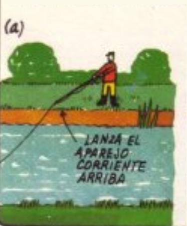 Primero de todo lanza el aparejo un poquito corriente arriba como sale en la imagen.