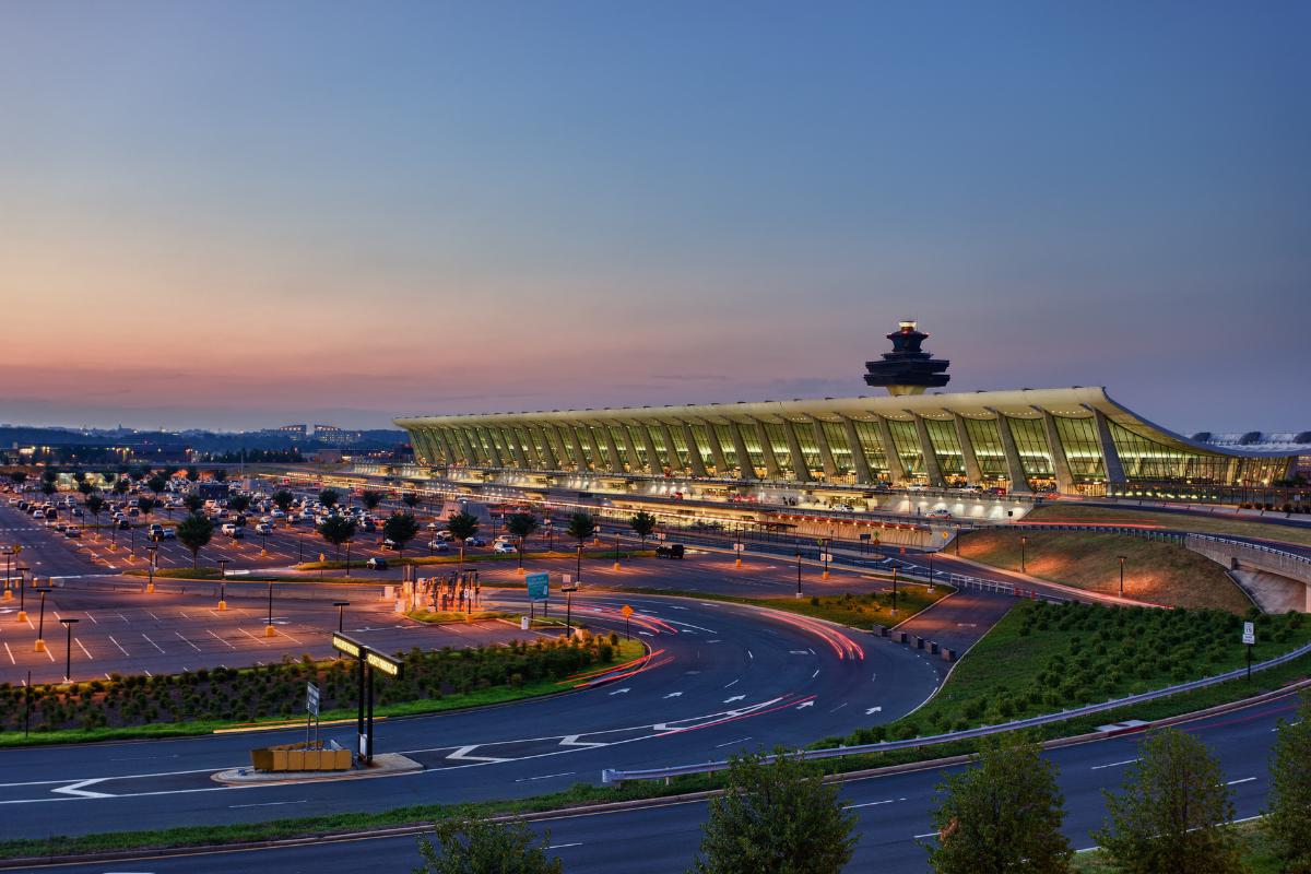 La capital de los Estados Unidos cuenta también con uno de los aeropuertos más grandes del país y del mundo. Con sus 48 km2, el Washington Dulles es además uno de los más modernos, que da servicio no solo a la capital federal sino a toda su área metropolitana. Construido en 1962, en terrenos del estado de Virginia, ha visto ampliadas sus instalaciones en dos ocasiones hasta convertirse en uno de los aeropuertos más grandes y con más tráfico a nivel mundial. En la actualidad, 36 aerolíneas operan en él, con vuelos directos a 125 destinos nacionales e internacionales.