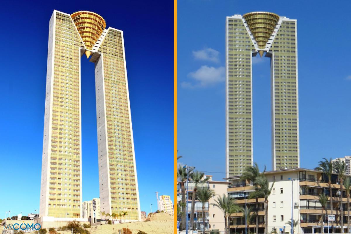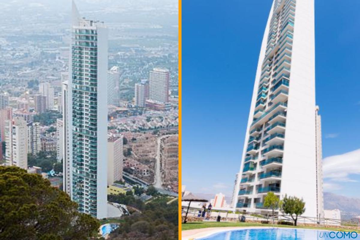 Si queremos descubrir el primer edificio más alto fuera de la ciudad de Madrid debemos hablar de Intempo, un espectacular complejo residencial que alcanza los 202 metros de altura y que se ha construido en la ciudad de Benidorm. Se trata del edificio residencial más alto de Europa que alberga, además, 256 lujosos apartamentos repartidos por 47 plantas que se han vendido por casi 2 millones de euros. Además de ser uno de los edificios más altos del país, Intempo es una construcción original y muy especial en forma de "M".