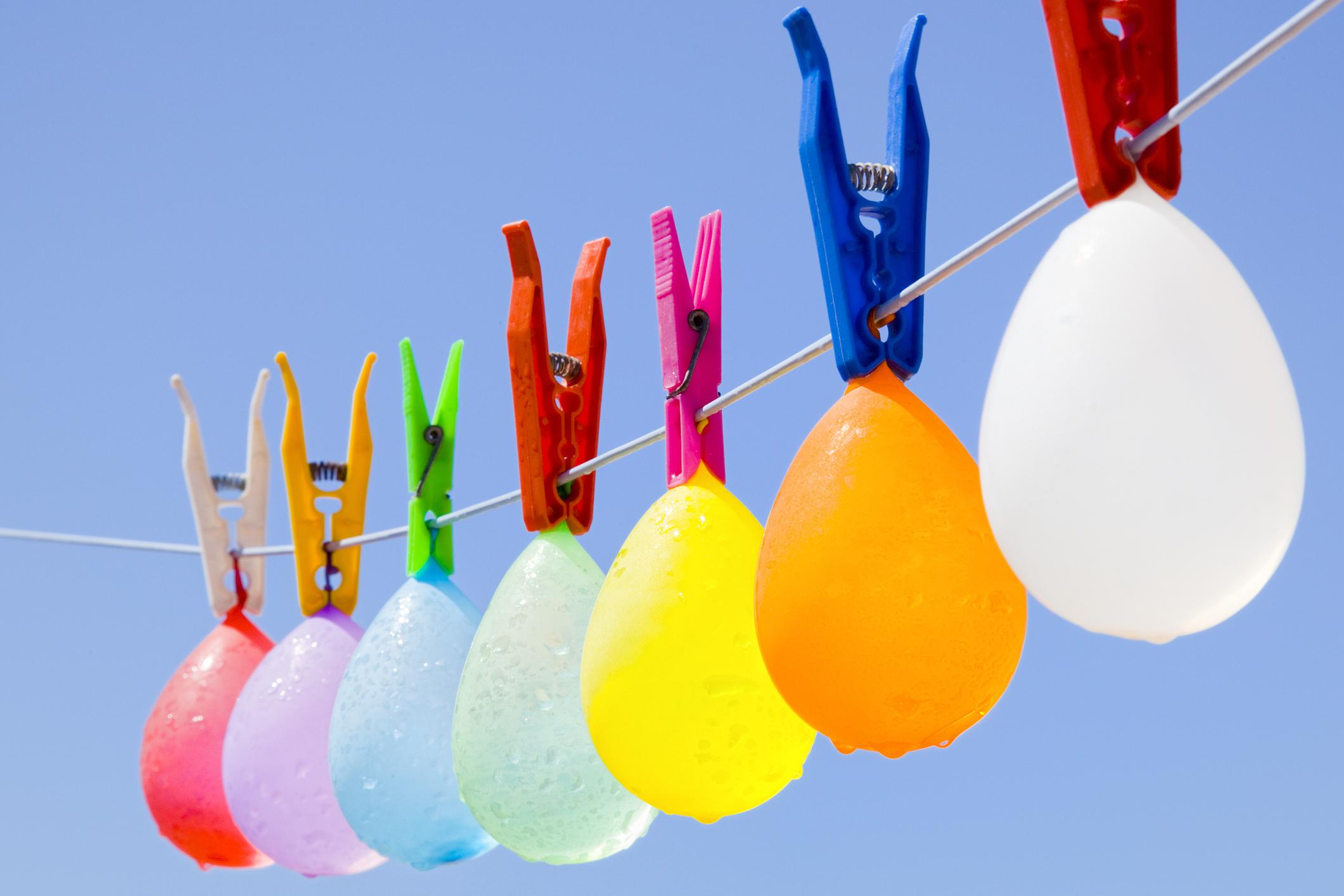 Coloca los globos grandes en una cuerda como si estuvieras teniendo la ropa. Si los niños quieren conseguir recompensas, tendrán que mojarse: deberán pinchar los globos para sacar el contenido.