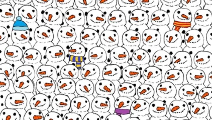Un reto en el que tendrás que fijarte muy bien. ¿Serías capaz de encontrar al oso panda entre todos estos muñecos de nieve? Cuando lo encuentres, pásalo a tus contactos como una cadena de WhatsApp o colócalo en tu estado para que tus contactos lo vean. ¡Se quedarán mucho rato buscando!