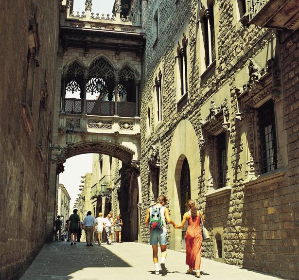 Si la ruta anterior ha despertado tu curiosidad, no puedes perder la oportunidad de conocer a fondo el barrio más bello de Barcelona, el Gótico. Para ello, te proponemos una ruta a pie que tomará como punto de partida la Plaça del Pi, donde encontrarás una de las iglesias góticas más conocidas, Santa Maria del Pi. Continúa por la calle de la Palla hasta llegar a la Plaça Nova, donde hallarás la catedral gótica más importante de Barcelona, la Catedral de Santa Eulàlia o Catedral de Barcelona. En la parte izquierda de la misma, se halla la Casa de L'Ardiaca, uno de los rincones escondidos del barrio Gótico. Continúa por esta misma calle hasta alcanzar la del Bisbe, una de las más hermosas de la ciudad, y donde se encuentra el puente gótico que une la fachada original del Palau de la Generalitat con la Casa dels Canonges. Ahora, gira por la calle de la Pietat hasta llegar a la Plaça del Rei, una de las más conocidas de la capital catalana. Vuelve a la calle del Bisbe y toma la de Montjuïc del Bisbe hasta llegar al final de la ruta, la Plaça de Sant Felip Neri, donde se esconde la iglesia barroca de Sant Felip Neri.