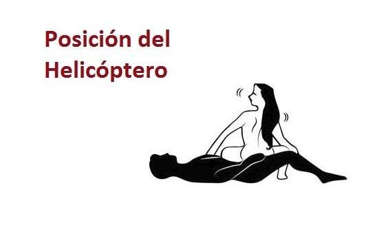 Para hacer el helicóptero, el hombre tendrá que acostarse en la cama o en otra superficie plana mirando hacia arriba con las piernas totalmente estiradas. Luego la mujer se pondrá encima de él, introduciendo dentro de ella el miembro viril de su pareja para que dé comienzo la penetración. Ahora la mujer comenzará a dar vueltas de 360º manteniendo el pene dentro de ella y utilizando sus manos y talones para hacer los círculos.