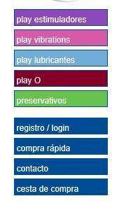 Una vez allí, encontrarás a tu izquierda una barra como la que observas en la imagen, donde se encuentran todos los productos que ofrece esta marca: estimuladores, vibradores, lubricantes, preservativos y su línea Play O, navega por la web consultando los juguetes que sean de tu interés