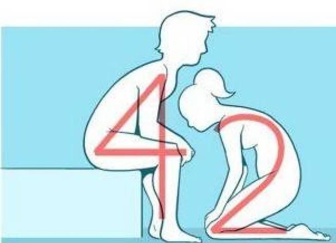 Pero, ¿por qué esta posición sexual recibe el nombre de "42"? Pues bien, se le llama "42" debido a que los cuerpos de los practicantes adoptan la forma de este número durante su realización. El que recibe el placer estará sentado y el que practica el sexo oral se situará de rodillas frente a su pareja, inclinándose hacia sus genitales, formando así un dos.