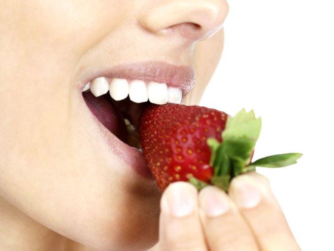 Entre los beneficios de las fresas, encontramos que es un alimento ideal para ayudar a blanquear los dientes. A ello contribuye su contenido de ácido málico, una enzima natural cuyas propiedades son bastante efectivas en la tarea de mantener los dientes con un color muy saludable.