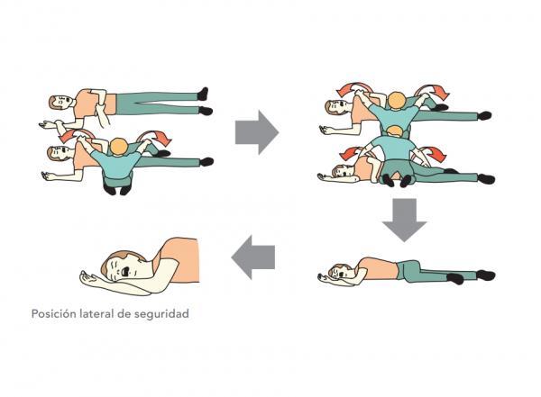 Si el afectado está inconsciente, deberemos tumbarlo en el suelo y colocarlo en posición lateral de seguridad para evitar que pueda ahogarse con su propio vómito. Puedes ver los detalles sobre esta posición en nuestro artículo acerca de cómo colocar una víctima en posición de recuperación.