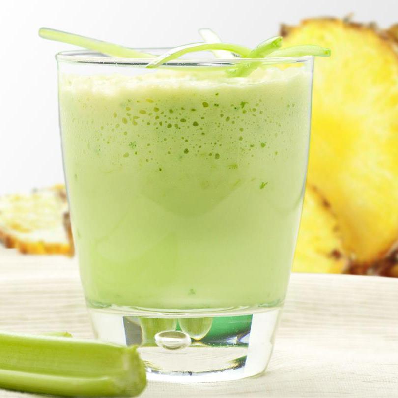 Lava bien las espinacas y las ramas de apio, trocéalo todo y agrégalo al recipiente de la licuadora. Luego, pela la piña y córtala en trozos no muy grandes, añádela a la licuadora y procesálo todo. Puedes tomar este jugo por la mañana, en ayunas, durante 7 días seguidos como máximo, más no es recomendable.