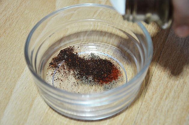 Mezcla los ingredientes secos primero en un tazón. Luego prueba para ver como quedó de picante colocando un poco en la lengua. Si es lo suficientemente picante, tus ojos comenzarán a lagrimear, y es perfecto.