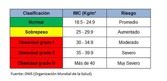 Desde la Organización Mundial de la Salud (OMS) se aconseja el uso de este cálculo del IMC para determinar la cantidad de grasa corporal que acumulas; es un cálculo muy sencillo y práctico que puede ayudar a cualquier persona a saber si está en una condición física de sobrepeso u obesidad.