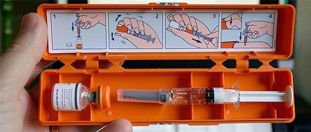 Si esto sigue sin funcionar, se le inyectará un medicamento llamado glucagón vía intramuscular. El glucagón está presente en nuestro cuerpo en forma de hormona hiperglucemiante. Su función es la contraria a la insulina, extrae la glucosa almacenada en el hígado y en los músculos para liberarla al torrente sanguíneo y así elevar los niveles de glucosa en sangre.