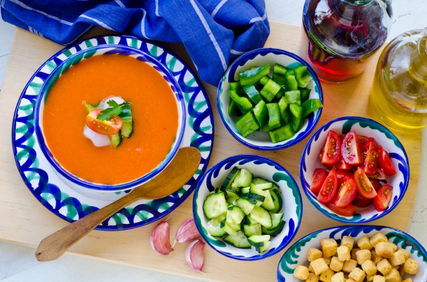 Los vegetales que se incluyen en la receta del gazpacho también son ricos en fibra vegetal, algo que permite mejorar los sistemas digestivos y fomentar el tránsito intestinal. Esto hace que también sea un plato ideal para prevenir el estreñimiento así como para incluir en las dietas para adelgazar ya que nos ayudará a estar saciados durante más tiempo.
