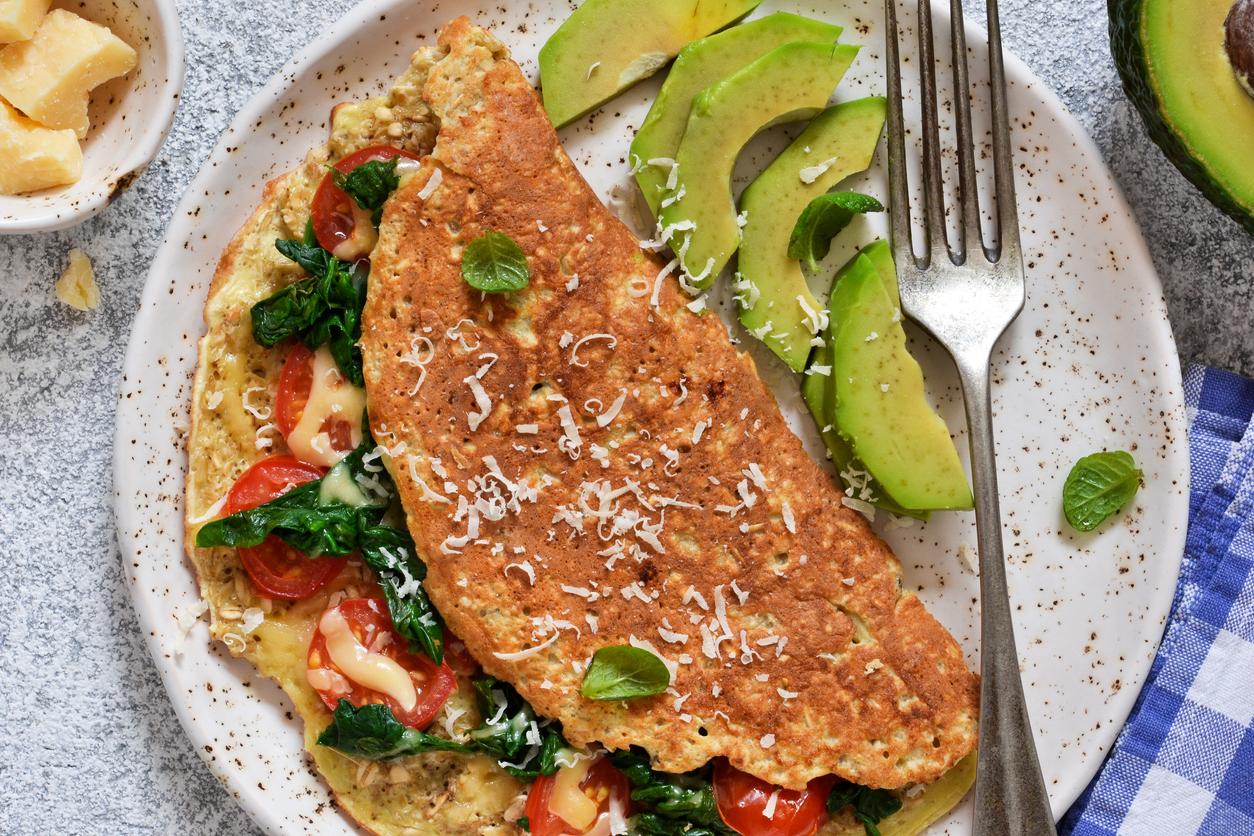 Otra de las alternativas de desayuno salado para adelgazar es una sencilla, pero deliciosa, tortilla francesa u omelette. El único cambio que deberás realizar si estás en un proceso de dieta es hacerla solo con una yema y dos claras, ya que es en la yema donde se acumula toda la grasa del huevo. Puedes añadirle pechuga de pavo o jamón dulce y queso light si quieres que sea un desayuno fuerte para tener más energía.