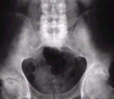 Cuando el cartílago cotiloídeo y de la cabeza femoral van disminuyendo de altura, se va produciendo una esclerosis subcondral, que representa una forma de reacciones del hueso ante la falla del cartílago hialino. Sobre los 55 años se pueden observar ulceraciones y erosiones que dejan al hueso subcondral sin su cubierta cartilaginosa, sin que medie ninguna alteración patológica conocida, sólo debido al uso (envejecimiento articular). Otro sintoma de la esclerosis subcondral es la disminución de altura del cartílago por fenómenos degenerativos, que se traduce en estrechamiento del espacio articular, que en las radiografías aparece como una línea nítida más blanca (mayor densidad ósea), en la zona de mayor presión y zonas hipodensas llamadas geodas, tanto en el cótilo como en la cabeza femoral.