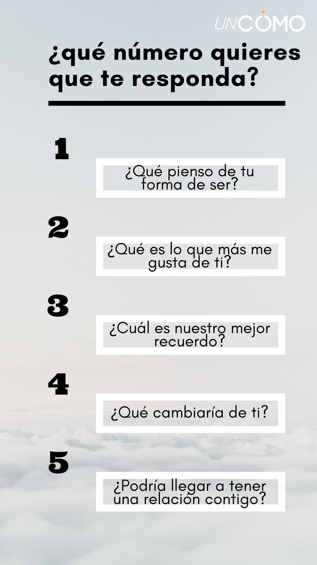 Si la número 3 es, por ejemplo, "¿Qué pienso de ti?" y el usuario en cuestión te pide el número 3, tendrás que ser honesto/a y decir qué piensas de él o de ella.
