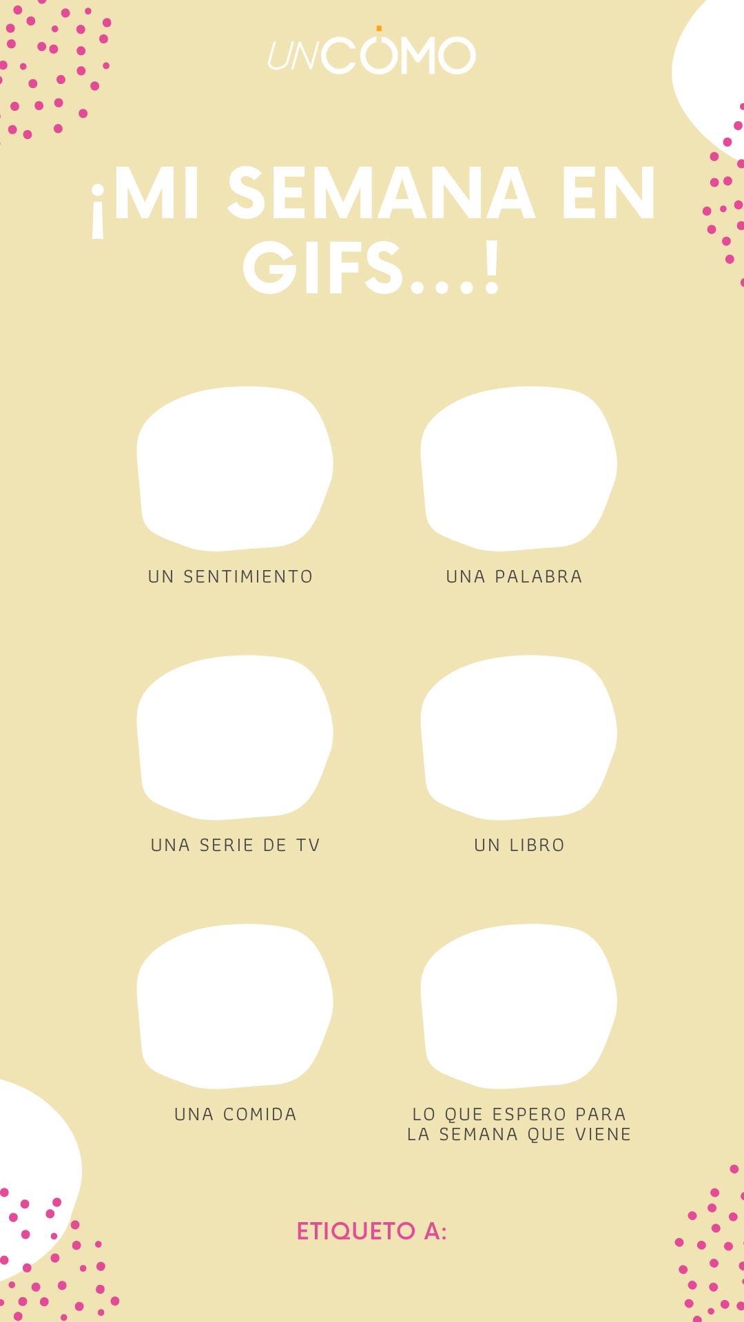 Para añadir color y humor a tu Instagram, nada mejor que una cadena como esta. Además, te permitirá conocer mejor a los usuarios que etiquetes y expresar tus sentimientos con algunos GIF divertidos y originales. Puedes hacer tantas preguntas como quieras para que tus amigos respondan a sus favoritos de la semana con GIF animados... ¡te mostramos un ejemplo!