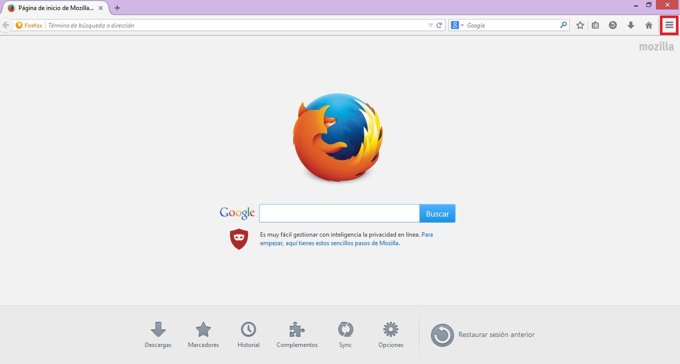Lo primero que deberás hacer para navegar de incógnito con Mozilla será abrir el navegador como lo haces usualmente, clicando sobre el icono o a través del menú de inicio. Por defecto, se tratará de una ventana normal y, por ello, deberás dirigirte al menú que encontrarás en la parte superior derecha, con un símbolo que incluye tres rayas horizontales, justo bajo la cruz de cerrar las ventanas.