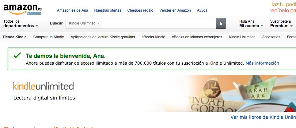 Tendrás que volver a hacer clic en 'Únete a Kindle Unlimited'. La suscripción será instantánea: verás un mensaje verde que te la confirma y ya podrás acceder a todos esos títulos desde tu Kindle.