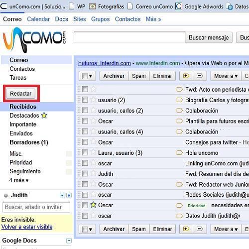 Dirígete a tu cuenta de correo electrónico y haz click en 'Redactar' para empezar a escribir el mensaje.