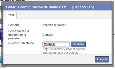 Una vez que pulsas en una de ellas, lo que podrás es administrar su contenido, es decir, el html, en caso de que lo tenga, o bien cambiar el enlace al que apunta, etc. En función de cada aplicación, el acceso a esta configuración será diferente. En nuestro caso, como ves, lo hacemos en el botón que dice “Edit tab”.