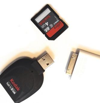 Extraiga la tarjeta SD del lector de tarjetas SD e inserte la tarjeta en el conector del iPad.
