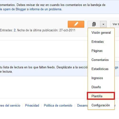 Acude al menú desplegable de tu menú de Blogger y haz click en 'Plantilla'.