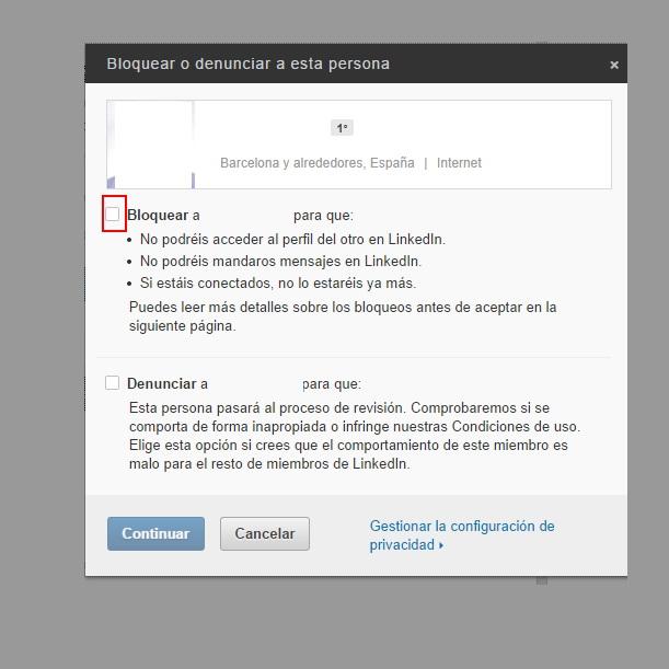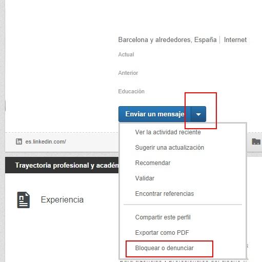 - El bloqueo de alguien en Linkedin sólo puede llevarse a cabo desde un PC de mesa; desde un dispositivo móvil o una tablet todavía no está desarrollada esta opción.