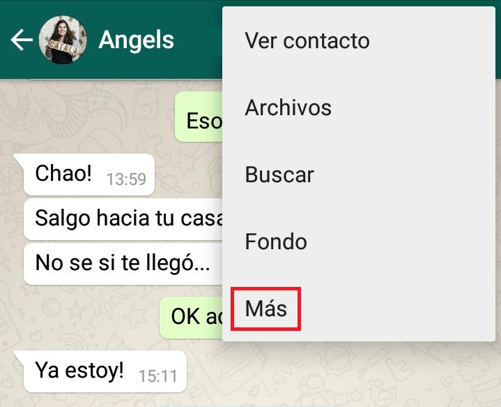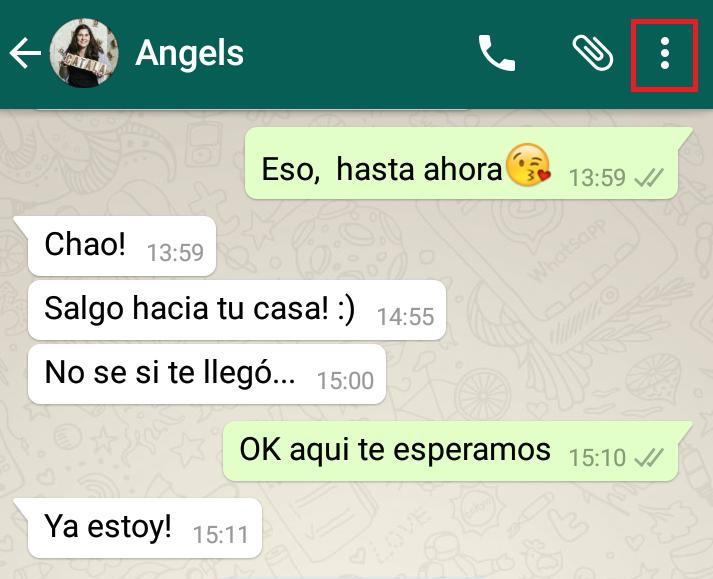 Dentro de la conversación deberás presionar los tres puntos que se encuentran en la esquina superior derecha para acceder al menú.