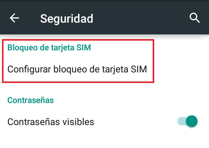 El Seguridad opta por la alternativa Configurar bloqueo de la tarjeta SIM, es aquí donde podrás alterar el código de seguridad de tu dispositivo y cambiarlo por cualquiera que puedas recordar bien.