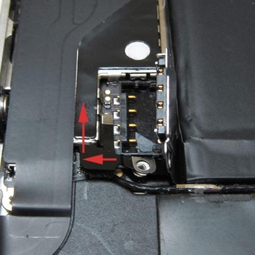 Usa una espátula de plástico para retirar el conector. Para hacerlo correctamente, apóyala en la parte inferior de éste e impulsa con fuerza hacia fuera.