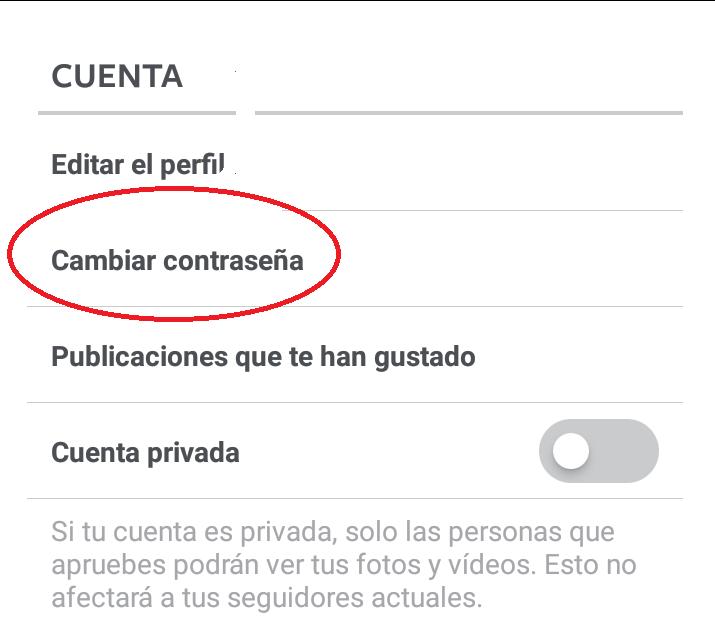Una vez dentro baja hasta cuenta y selecciona "Cambiar contraseña", es aquí donde podrás hacer el cambio de clave para optimizar la seguridad de tu cuenta de Instagram.