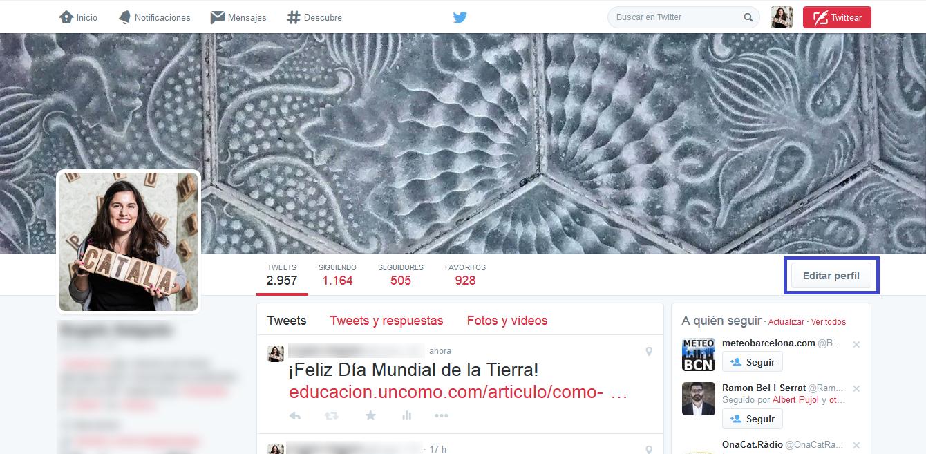 De esta forma, si quieres renovarla porque se ha quedado anticuada, no te acaba de gustar cómo sales en esa foto o cualquier cosa similar, el primer paso para cambiar tu foto en Twitter será que accedas a tu perfil y presiones sobre el botón "Editar perfil" que aparece en la parte derecha, justo debajo de la foto de portada.