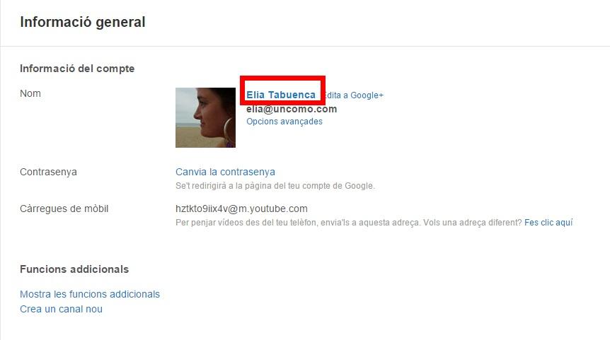 En el centro de la pantalla aparecerán ahora diferentes opciones que puedes configurar pero para cambiar la foto de perfil tan solo tendrás que pinchar sobre tu nombre, tal y como mostramos en la imagen adjunta. Youtube te da la opción de editar tu perfil también directamente desde Google+ pero si no quieres salirte de la página simplemente marca encima de tu nombre de usuario.