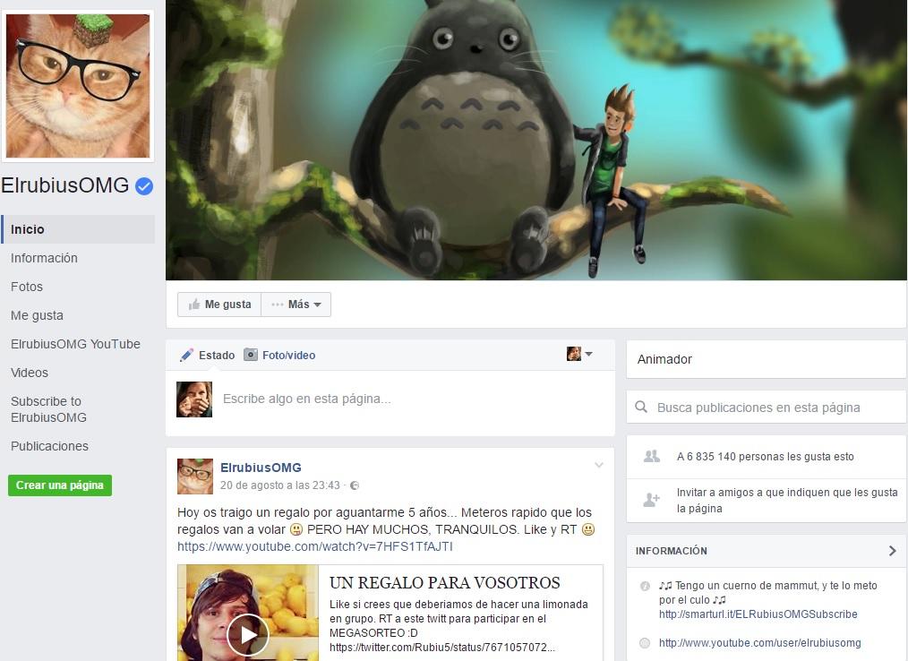 Pero las opciones para contactar con ElRubius no se acaban aquí, en Facebook, la red social por excelencia, también tendrás la posibilidad de mandarle un mensaje y ponerte en contacto con el famoso youtuber.