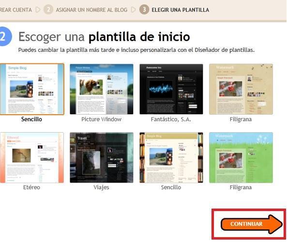 Escoge una plantilla para tu blog, esto te servirá para personificarlo y diferenciarlo de los demás. Si más adelante decides organizarlo de una manera diferente, siempre podrás volver a cambiar la apariencia. Aprieta 'Empezar a publicar'.