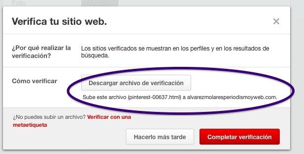 Una vez creado el perfil de empresa en Pinterest, tenemos la opción de introducir la dirección de nuestra página web y, lo que es más importante, verificarla. Es una tarea sencilla, si seguimos los pasos de forma ordenada.