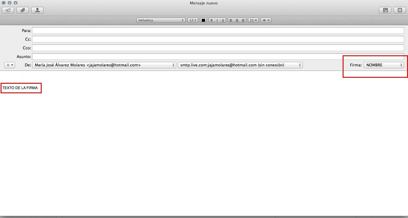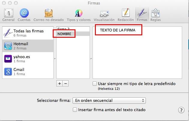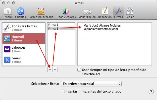 Pero una vez pulsado el "+" ya puedes darle el nombre que tu quieras a la firma, para tenerla identificada, y escribir el texto que desees que aparezca.