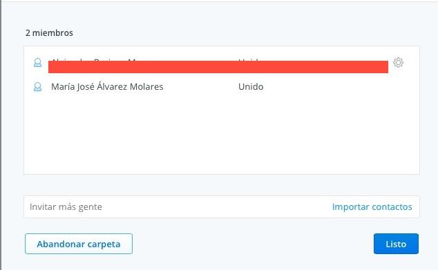 Como ves, en este caso somos propietarios de la carpeta compartida en Dropbox, es decir, somos nosotros quienes la hemos creado y hemos invitado después a otro usuario. Tenemos, entonces, dos opciones: