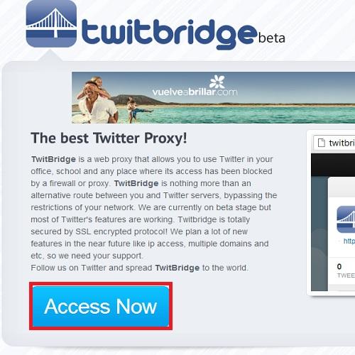 Pulsa sobre 'Acces Now' para acceder a tu Twitter desde el trabajo y, seguidamente, escribe tu nombre de usuario y contraseña.