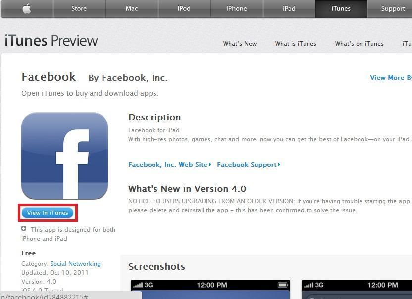 Primero de todo tienes que tener descargado el iTunes en tu ordenador personal, para poder descargar la versión oficial de Facebook para iPad.