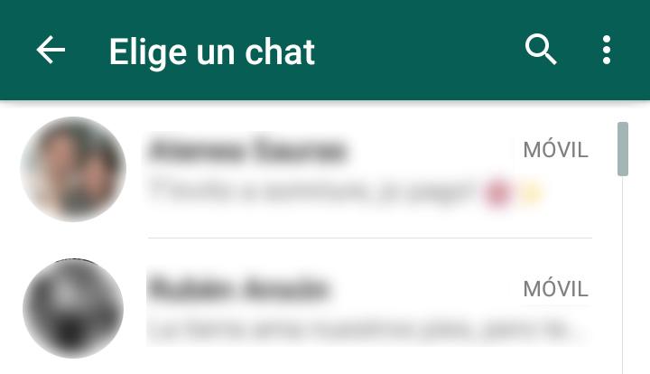 A continuación, tendrás que elegir el chat en cuestión que quieres enviar a través de correo electrónico, y es que esta funcionalidad de te permite exportar el historial de conversación que has tenido con un contacto o incluso con un grupo. Así pues, podrás usar la lupa de la parte superior para buscar la conversación concreta que quieres descargar.