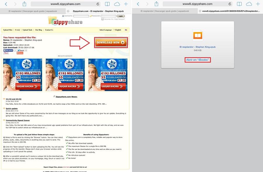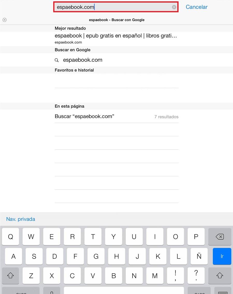Para poder descargar libros gratis para iPad deberás abrir Safari desde tu dispositivo e introducir la dirección de la siguiente página: espaebook.com. Es imprescindible que lo hagas desde Safari puesto que con el resto de navegadores no funcionará.