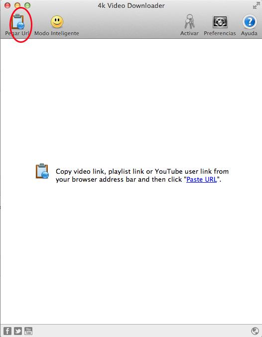Abre el programa 4K Downloader haciendo doble click sobre su icono. Haz click en el botón "Pegar URL" que aparece arriba a la izquierda.