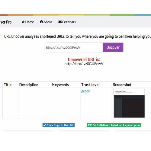 En la categoría 'Screenshot', Uncover te mostrará ahora una captura de pantalla de la página web que se encuentra detrás del link acortado. ¡Listo!